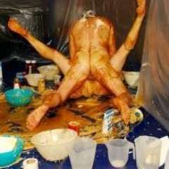 MessyLady_v2 got rubbed down on an inflatable covered with custard by Chuck M